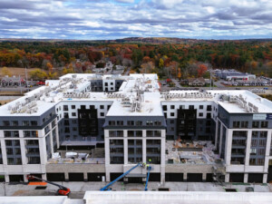 The 86 Newbury mixed-use development in Portland, Maine features apartments, corporate offices, a hotel, and a well-known brewery. Working with Apex Green Roofs, Naturcycle green roof media manufactured at our blending facility in Massachusetts was blown onto the roof via specialized blower trucks by Applied Mulch & Soil.