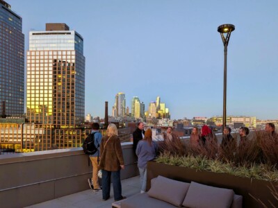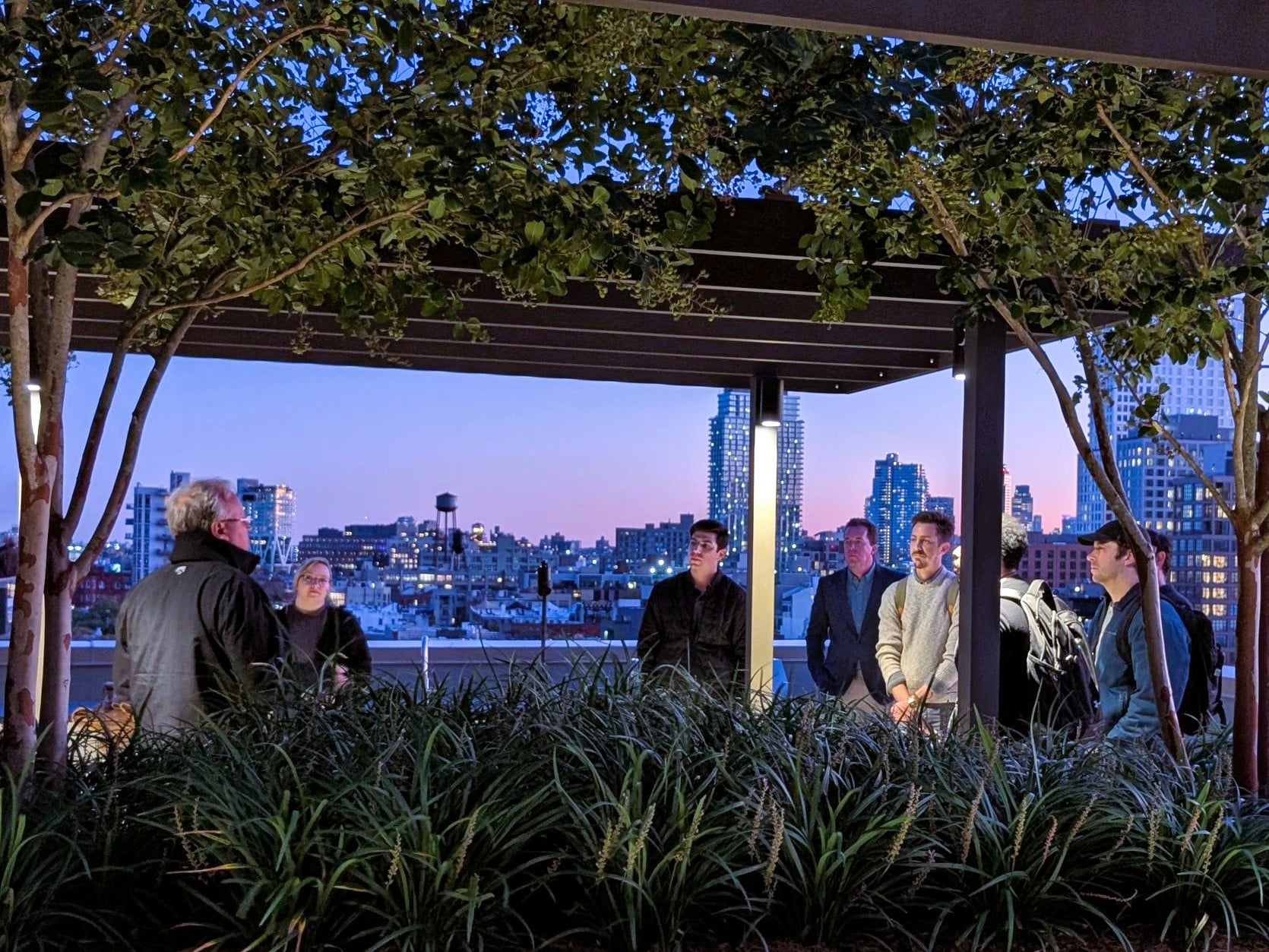 Participants were divided into small groups and rotated through four speakers that were involved in the construction of the rooftop amenity space. The topics discussed covered manufactured green roof media by Naturcycle, lightweight aggregate by Arcosa Lightweight, construction logistics by Solicito & Son Contracting, and pneumatic blower truck operations by Downes Forest Products. These partnerships were critical to constructing this beautiful outdoor rooftop space in the heart of an urban center.